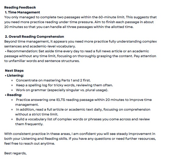その日にテスト結果とフィードバックがもらえるので、すぐに自分の弱点や改善点を把握することができます!