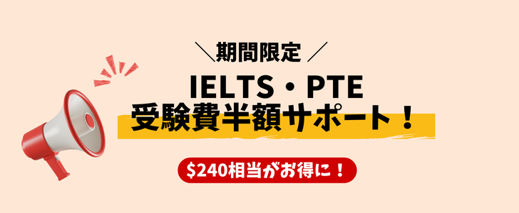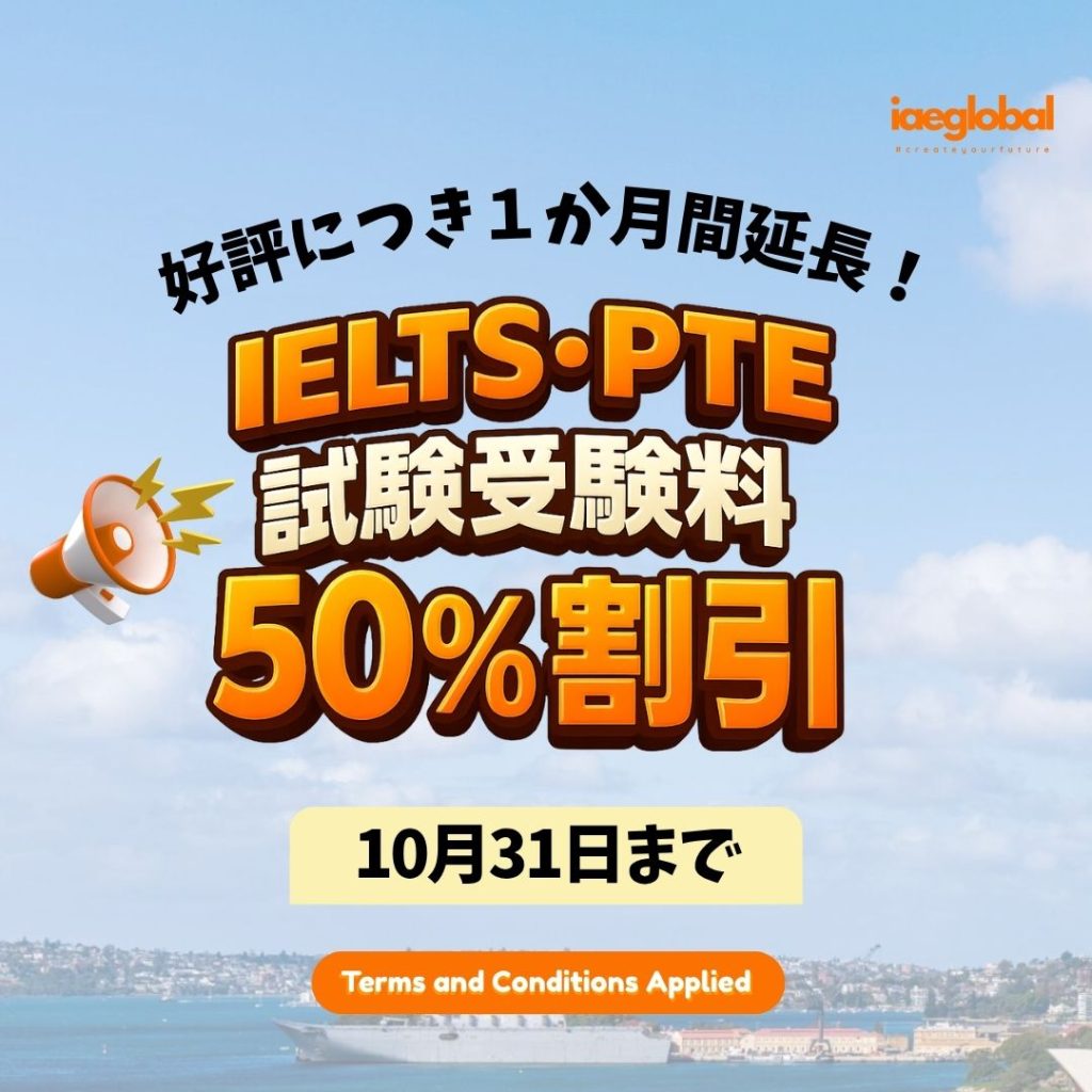 現在、iaeシドニーではIELTS/ PTE試験の半額をサポートするキャンペーン実施中!