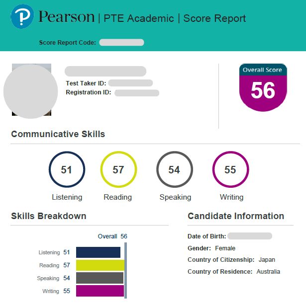 オーストラリアの現地大学進学のため、PTE 50(IELTS 6.0)以上のスコアが必要でした。