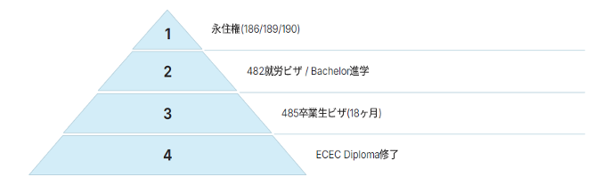 卒業生ビザ(SC 485)→ 就労ビザ(SC 482)→ 永住権(SC 186)