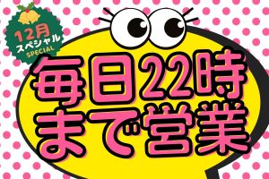 毎日10時までオープン! 12月は、曜日を問わず毎日夜10時(22時)まで営業いたします。お仕事帰りに、ゆったりとご相談ください。