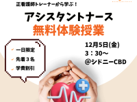 当日は、現役の登録看護師(Registered Nurse)であるトレーナーが授業を担当。