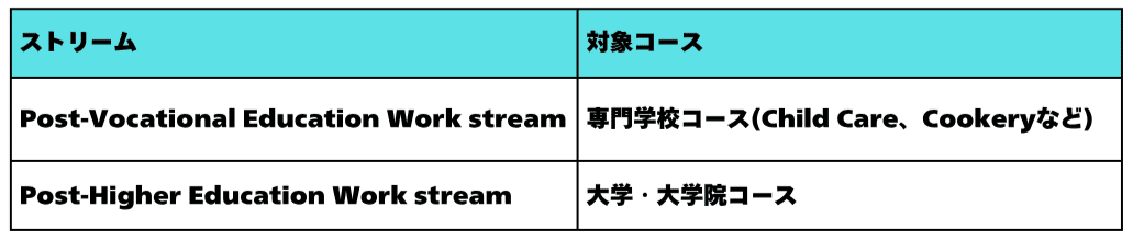 卒業生ビザには2つのストリームがあります。
