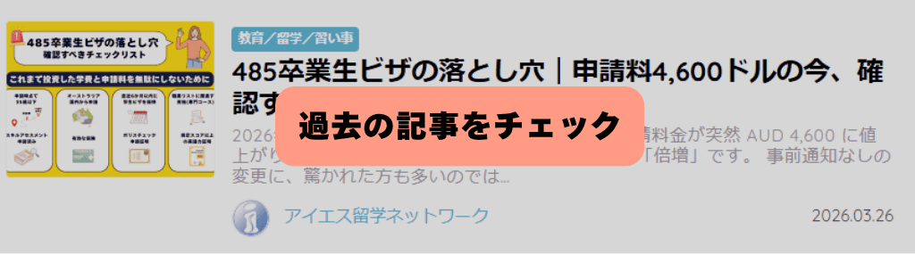 前回、485卒業生ビザの「概要・注意点」について解説しました。