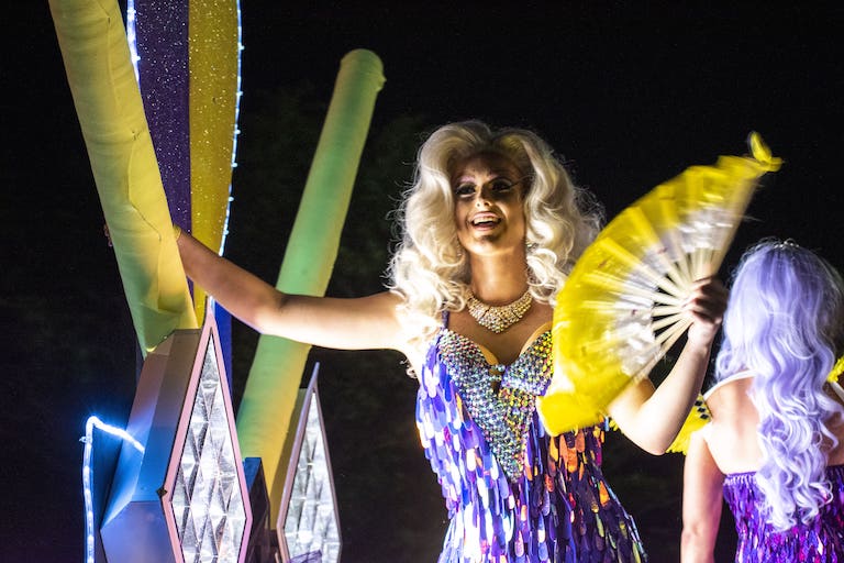 各グループはマルディ・グラのテーマである「FEARLESS(大胆不敵)」を取り入れて、大音量の音楽を響かせながら、LGBTQIへの支持を訴えかけた。