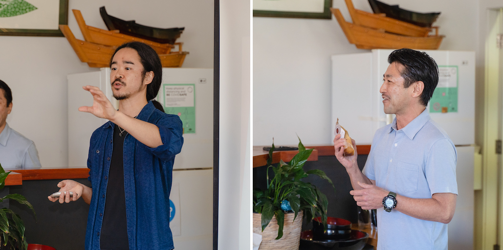 同発表会は、第1部:プレゼンテーションとQ&Aコーナー/第2部:新商品の実食と2部構成で、プレゼンターに「Dai’s Natto」のDaisuke Iwase代表、「Imamura sauce and dressing」のEiji Imamura代表が登壇。ゲストにはコメンテーターとして「Culinary Studio Dekura」からHideo Dekura氏、「Jicca Dining」からKen Takenakaシェフを招き、鼻をくすぐる温かな料理の匂いと和やかな雰囲気のなか進められた。