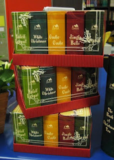 本のデザインの美しい箱に入った6種類のミニ缶(ティーバッグ入)セット($60)