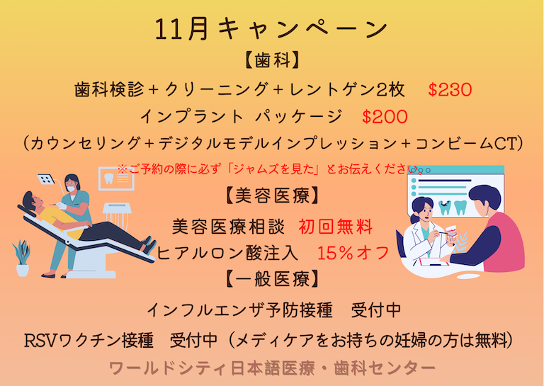 シドニーにある「ワールドシティ日本語総合医療・歯科センター」では、今月も歯科・美容医療・GP全てでキャンペーンを実施中!