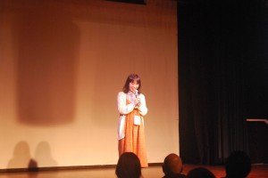 | 挨拶する岩崎靖子監督。4年かけて撮影が行われた。 | 白雪姫プロジェクトの活動や映画について語る山元さん。 |