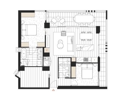 こちらもマルチパーパスルーム(スタディルーム)がお部屋くらいの大きさがあり、ほぼ3ベッドルームとして使えるとてもお得なフロアプランです。価格は$830,000からとなっております(2025年10月29日現在)。スタンダードな2ベッドルームもあり、$780,000(2025年10月29日現在)から購入可能です。