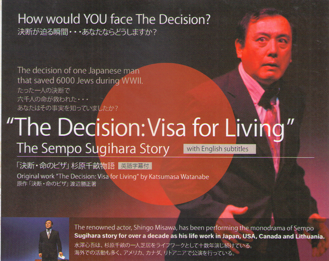 この「杉原千畝」の一人芝居をライフワークとして国内外で十数年演じ続けている、俳優・水澤心吾さんの公演が12月に開催されます!