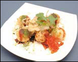 Pan fried pork & vegetables dumplings seasoned by special dumpling sauce, shredded leek and sweet chilli |