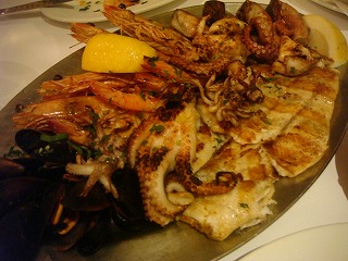 お薦めはシーフードプラッター!全て炭火でグリルされた新鮮な魚介類はレモンを搾っていただきます!