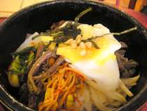 ●Dolsot Bibimbap: vegetables (namul) with beef and egg on steamed rice in a sizzling hot stone pot served with miso soup / $14.50, seafood $19.00