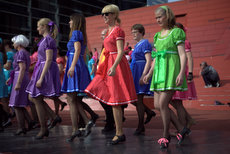 鮮やかなコスチュームを身にまとったダンサーはほとんどが女性で、小学生ぐらいの女の子から、年配の方までさまざま。約50名のダンサーが一斉にタップ・ダンスをすると、軽快なリズムで奏でられたステップが辺り一面にこだまし、道行く人も歩みをやめてダンスに見入る姿も。