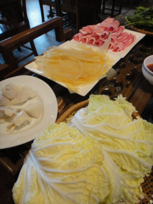 今回も白菜、ほうれん草、湯葉、ワンタン、コリアンダーボールをオーダーしました。お肉はラム肉です。