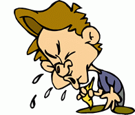 sneeze(動詞)は、風邪や花粉症などの症状のひとつで、鼻と口から発作的に急激に息を吐き出すこと、つまり、くしゃみをする、という意味です。