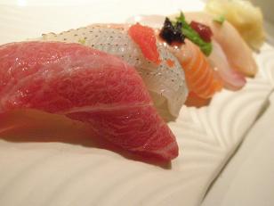 小ぶりなシャリに新鮮で彩りの良いネタがそろっています その美しい見た目にうっとり・・・ もちろん味も本格!!! 手前から ・本まぐろの大トロ(*運がよければいただけます) ・イカ明太 ・サーモンベリーの昆布マヨ ・ハタの梅肉乗せ ・ソードフィッシュベリーの漬け